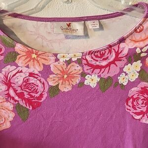Quacker Factory 3/4 Sleeve T-Shirt with Floral Roses Bling Purple Medium
