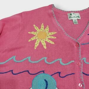 Quacker Factory 3X Button Front Cardigan Summer Beach Pelican Pink Grandmacore