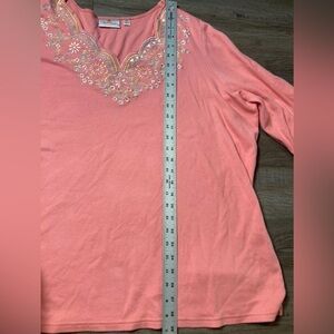 Quacker Factory 3X Shirt Top Peach Embellished Floral Embroidered 3/4 Sleeve