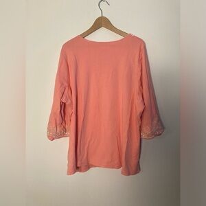 Quacker Factory 3X Shirt Top Peach Embellished Floral Embroidered 3/4 Sleeve