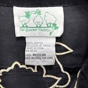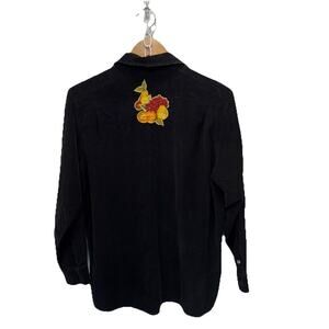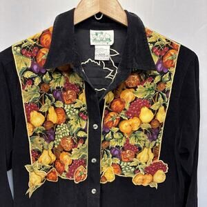 Quacker Factory Appliqué Fall Harvest Corduroy Shirt M Black Orange Button Up