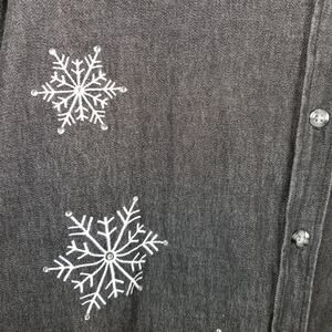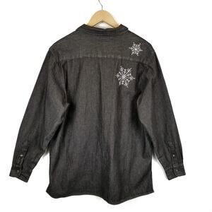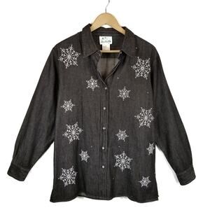 Quacker Factory Black Chambray Snowflake Button Up Shirt Size L Large
