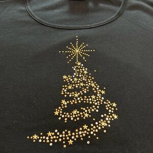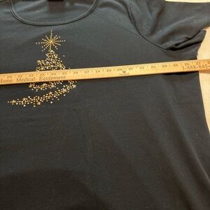 Quacker Factory Black Short Sleeve T-shirt Gold Beaded Christmas Tree Sz3XL