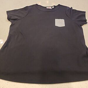 Quacker Factory Black T-shirt 2x Cotton Blend Short Sleeve