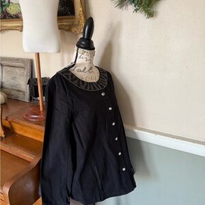 Quacker Factory Black and Silver Bling Jean Jacket with Embroidered Collar NWT