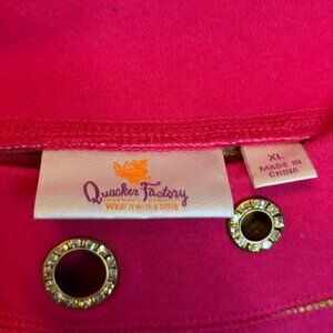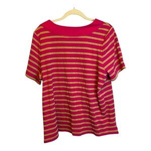 Quacker Factory Blouse Women's Size XL Stripes Boat Neck Sparkle Pink Gold