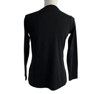 Womens size XXS, blouse, shirt, top, black, multicolor, V neck, fitted sleeves, long sleeves, pullover, embellished, detailed, bling, jewels, cotton, polyester, hand wash only, made in China, casual, party, cocktail, office, workwear, unlined, collarless, all seasons, winter, spring, summer, fall