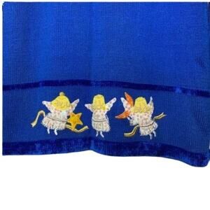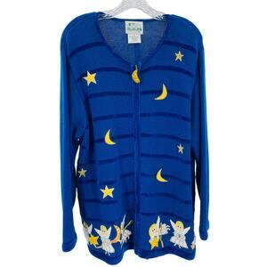 Quacker Factory Blue Chenille Yellow White Embroidered Angels Cardigan Plus 1X