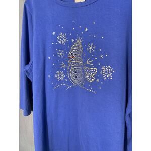 Quacker Factory Blue Christmas Top Women’s 1X – Rhinestone Snowman Holiday Shirt