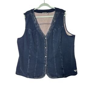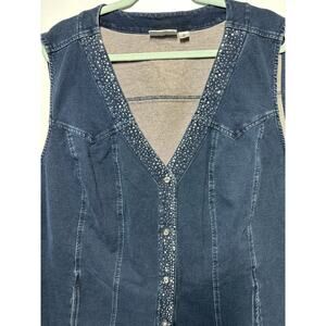 Quacker Factory Blue Embellished Denim Button Up Collared Sleeveless Vest Top 3X