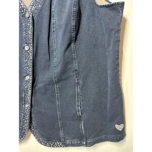 Dream Jeannes by Quacker Factory Embellished Rhinestone Denim Button Up Vest