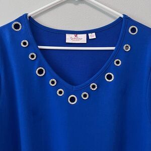 Quacker Factory Blue Long Sleeve Tunic Top With Pockets Size 1X