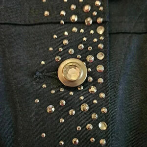 Navy sleeveless vest with blue rhinestone buttons Stud embellishments on the collar and down the front