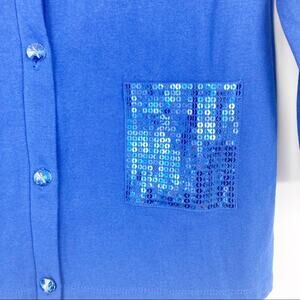 Quacker factory blue button down cardigan sequin pockets