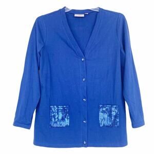 Quacker Factory Blue Sequin Button Front Cardigan Sz S
