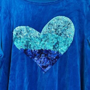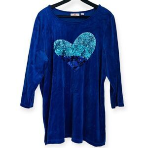 Quacker Factory Blue Velvet Heart Sequin Tunic Blouse Size 1X