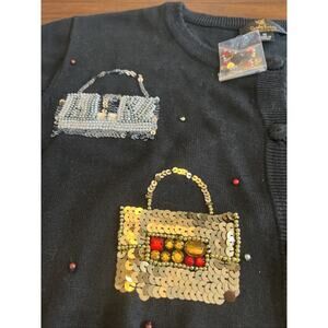 Quacker Factory Cardigan Sweater Wmns Sz 1X Black Bead Sequin Purses Grandmacore