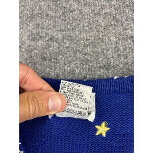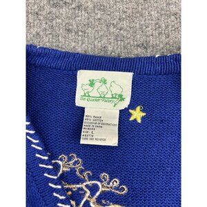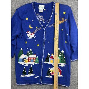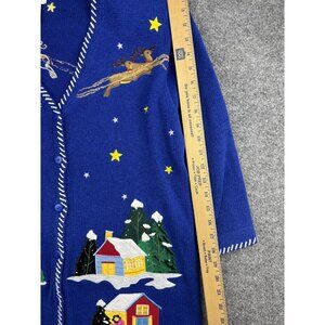Quacker Factory Cardigan Sweater Womens Large Blue Christmas Santa Embellished