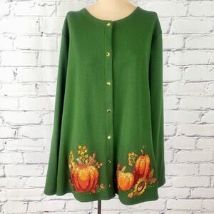 Quacker Factory Cardigan Womens XL Fall Pumpkin Embroidered Beaded Snap Knit