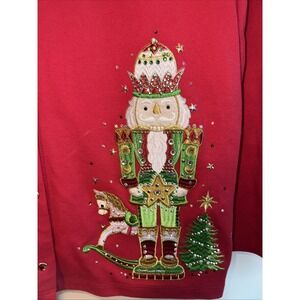 Quacker Factory Christmas Cardigan Nutcracker Candy Cane Embellished Sz L EUC