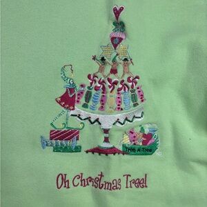 Quacker Factory Christmas Tree Sweatshirt Embellished Embroidery Size XL Green