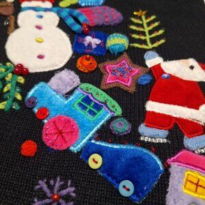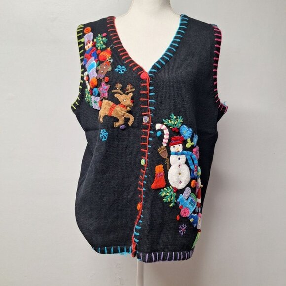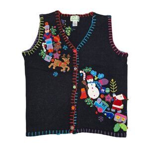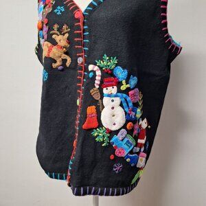 Quacker Factory Christmas Vest Bells Large Embelished Sweater Knit Embroidered