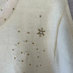 Quacker Factory Cream Sweater with Gold Sleigh Design