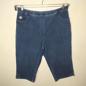 Quacker Factory Dream Jeannes denim stretch pull on capri pant. Size 2X. Cotton, spandex. (23164)
