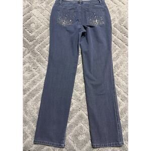Quacker Factory Dream Jeannes Straight Leg Jeans Embellished Pocket 8 30x31
