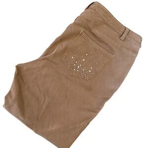 Quacker Factory DreamJeannes Women's Camel Embellished Pants 18W Short
