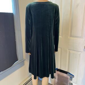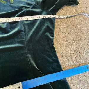 Quacker Factory Dress Size Medium Green Velvet Velour Embroidered Floral Holiday