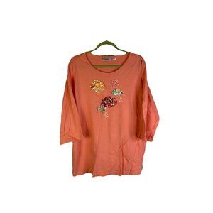 Quacker Factory Embellished Sequin Fish Long Sleeve Shirt Orange