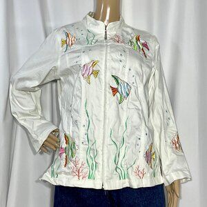 Quacker Factory Embroidered Fish Sz Med Jean Jacket