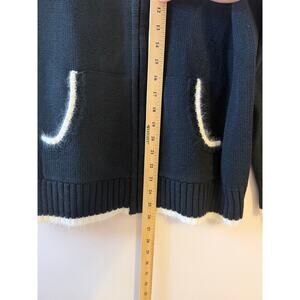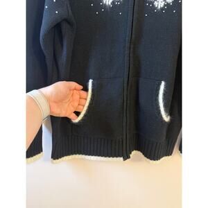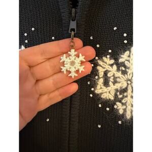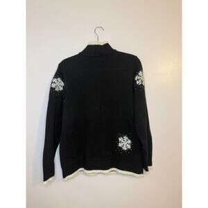 Quacker Factory Festive Snowflake Full Zip Sweater Black White Winter Sweater S