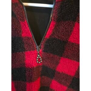 Quacker Factory Fleece Sweatshirt S Womens Pullover Soft Cozy Red Black Warm
