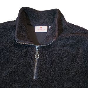 Quacker Factory Fleece Womens M Black Sherpa Quarter Zip Pullover Fluffy