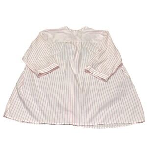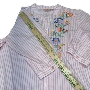 Quacker Factory Floral Embroidered Blouse Pink White Stripe Button Up Women's 1X