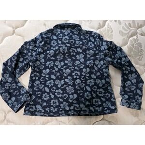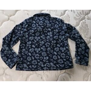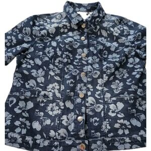 The Quacker Factory Floralicious Snap Front Jacket is a stylish and comfortable women's jacket in a medium size. Made from a cotton blend denim fabric with a floral pattern, this jacket features long sleeves and a button closure. The blue color adds a pop of color to any outfit, while the stretch feature provides a comfortable and flattering fit. Perfect for everyday wear, this basic jacket from Quacker Factory is a must-have for your wardrobe.
