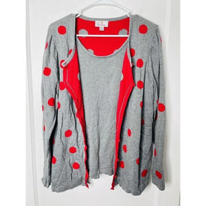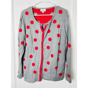 Quacker Factory Fooler Top Large Polka Dot Cardigan Sweater Ornate Buttons Gray