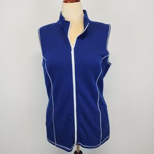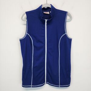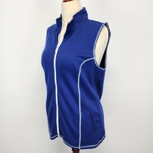 Quacker Factory French Terry Rhinestone Full Zip Vest Size M Blue Stretch Mature