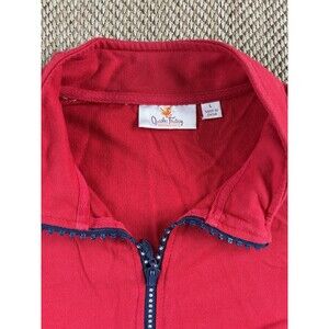 Quacker Factory French Terry Zip Front Rhinestone Vest Red Size Large A273161