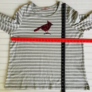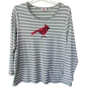 Quacker Factory Gray Knit Sequin Cardinal V Neck Pullover top size 1X