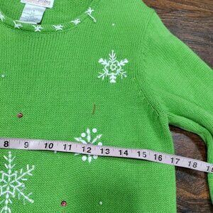 Quacker Factory Green Cute Ugly Christmas Sweater S Snowman & Reindeer