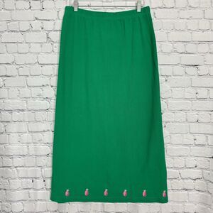 Quacker Factory Green Long Maxi Skirt Womens Size L Embroidered Hem Cotton