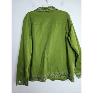 Quacker Factory Green w/Studded Detail Cotton Button Up Jacket size 1X