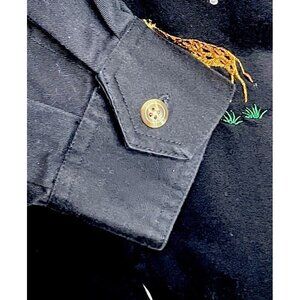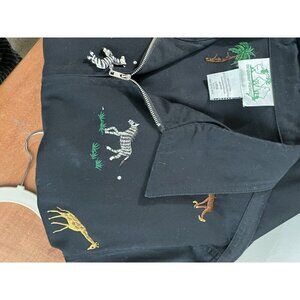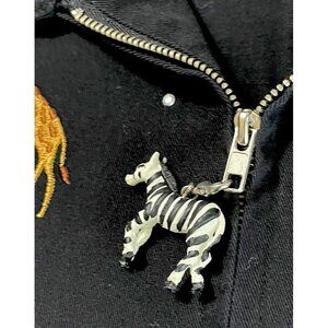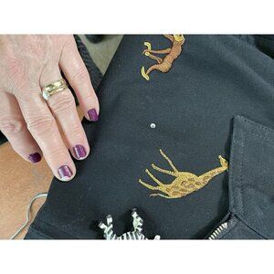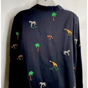 Quacker Factory Jacket Black Embroidered Jungle Animals Palm Trees Zip Up Casual