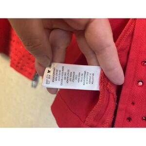 Quacker Factory Jacket Large Jeweled Red Cotton Denim Full Zip Collared Holiday