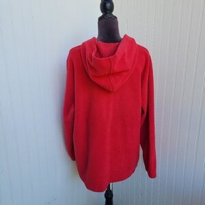 Quacker Factory Jacket Rhinestone Zip Hooded Fleece Red Pink Soft Lightweight XL