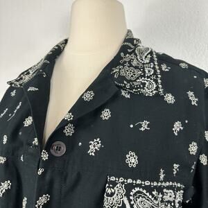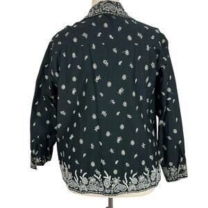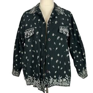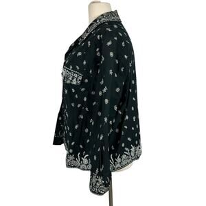 Quacker Factory Jacket Women 2X Black Bandana Embellished Western Boho Artsy