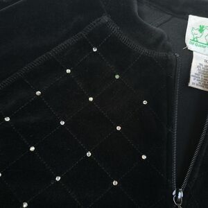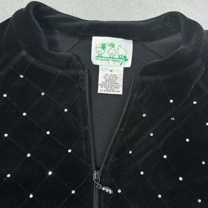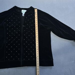 Quacker Factory Jacket Womens 1X Black Velour Rhinestone Zip Up Pockets Elegant Top